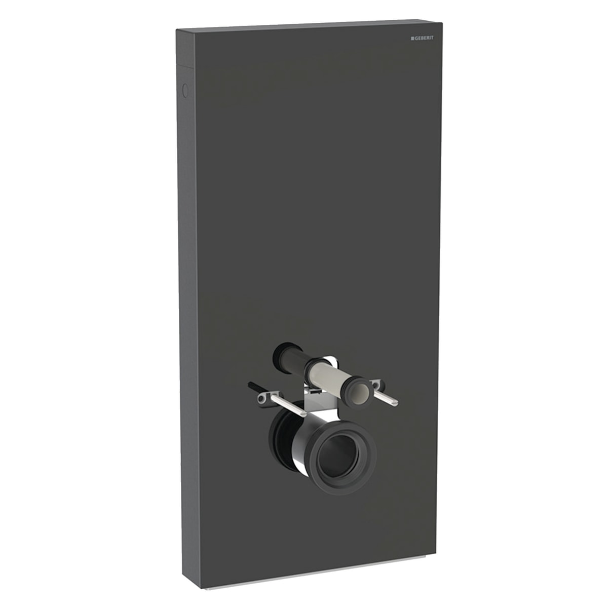 Dette cisternemodul fra Geberit er designet til væghængte toiletter og kombinerer funktionalitet med et stilrent design. Med en højde på 101 cm og frontpaneler udført i sort glas og sort krom aluminium, passer modulet ind i moderne badeværelsesindretninger.