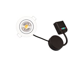 Lille og smart 350mA spot med Ø65 (hulmål Ø56 mm) til direkte i isolering. Høj farvegengivelse (Ra95) og "flikkerfra" (lys uden flimmer) som giver et utrolig behagelig lys. Vi kan varmt anbefale dette produkt. Indbygningshøjde på bare 22 mm.