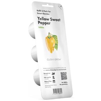 Med Click & Grow Refill Gul Sød Peber kan du nemt dyrke dine egne, friske, gule peberfrugter derhjemme.