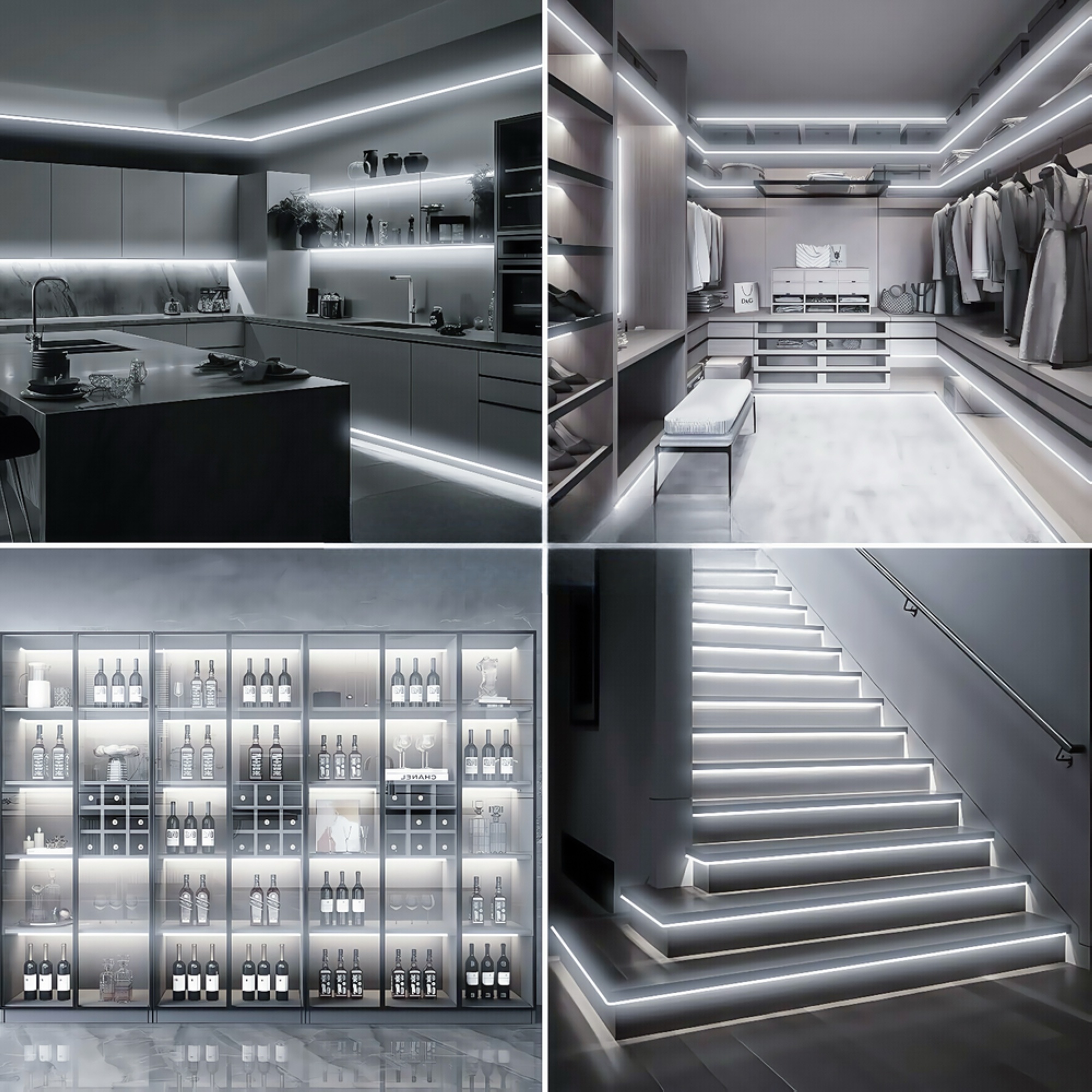 LED strippen er IP67-klassificeret, hvilket sikrer beskyttelse mod støv og nedsænkning i vand, og gør den velegnet til både indendørs og udendørs brug. Den er dæmpbar, hvilket giver fleksibilitet til at justere lysstyrken efter behov.