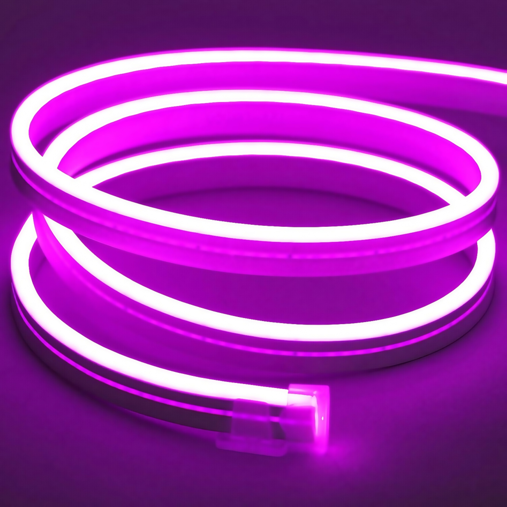 Denne lilla Neon Flex LED strip er designet til at give en ensartet og fleksibel lyskilde, perfekt til kreative belysningsprojekter. Med en bredde på 8 mm og en højde på 16 mm, er strippen nem at integrere i forskellige installationer.
