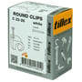 Hvide clips, 22-26 mm/45 mm, sæt med 50 stk. Ideelle til fastgørelse af kabler og ledninger.