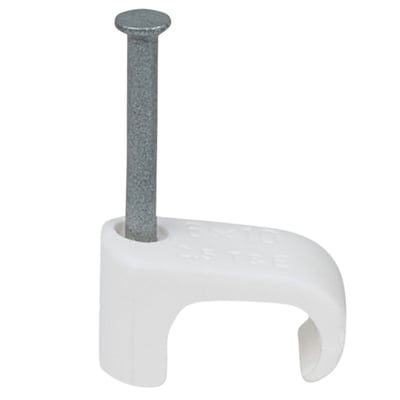Hvid clips 6x10/25mm-100 fra Tillex. Perfekt til fastgørelse af kabler og ledninger.