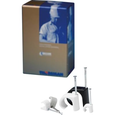 TC kabel- og ledningsclips til hurtig installation af runde og flade kabler. Med sikkerhedssøm, der bøjer for det knækker. Til træ, masonit og spånplader.