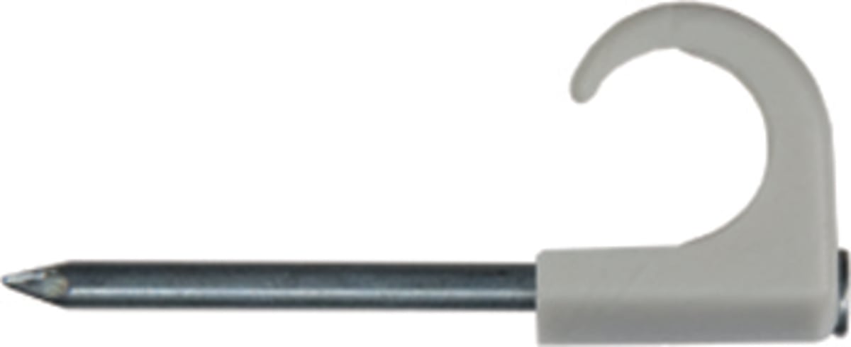Rund kabelclips TC fra Schneider Electric til indendørs brug. Passer til kabler med en diameter på 8-12 mm. Med 35 mm søm.
