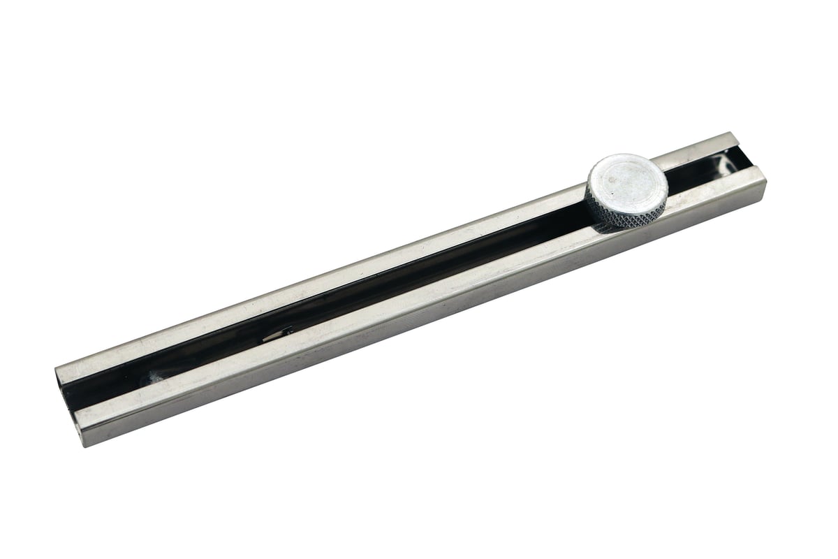 Holder i forniklet metal med lommeclips. Passer til sæbestenskridt (Clover) 5x13x130mm.