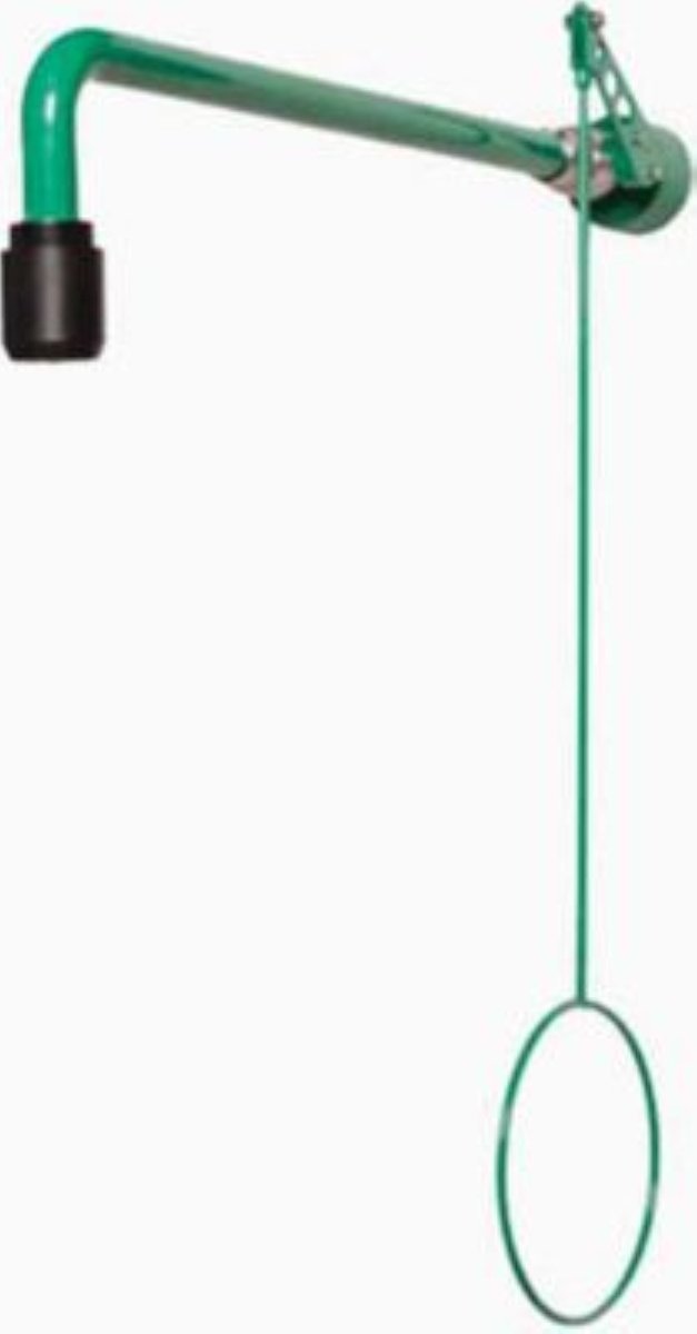 Nødbruseren aktiveres nemt via et trækgreb, der er forbundet til en 3/4" kugleventil. Den grønne udførelse gør den let genkendelig i et laboratorie- eller industrielt miljø.