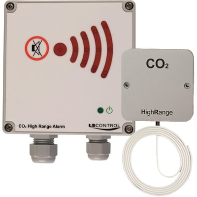 CO2 High Range Alarm komplet indeholder alt, hvad der behøves til CO2 overvågning og alarmering.
