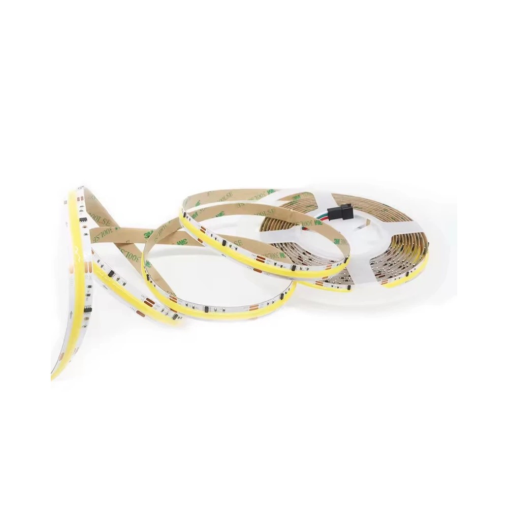 Denne 5 meter COB LED strip med integreret IC løbelys-funktion giver dig mulighed for at skabe dynamiske og iøjnefaldende lyseffekter. Med en effekt på 12W pr. meter og 120 LED'er pr. meter leverer den en jævn og kraftfuld belysning, der er perfekt til en række indendørs applikationer.