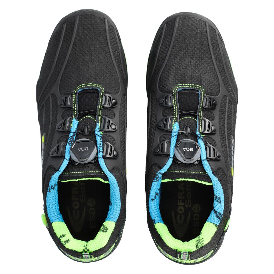 Let og smart S3 sikkerhedssko med BOA lukning, åndbart og vandafvisende læder, Alu tåværn og fibersømværn. ESD godkendt.
