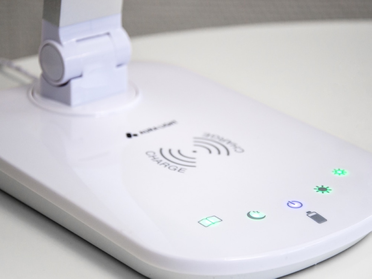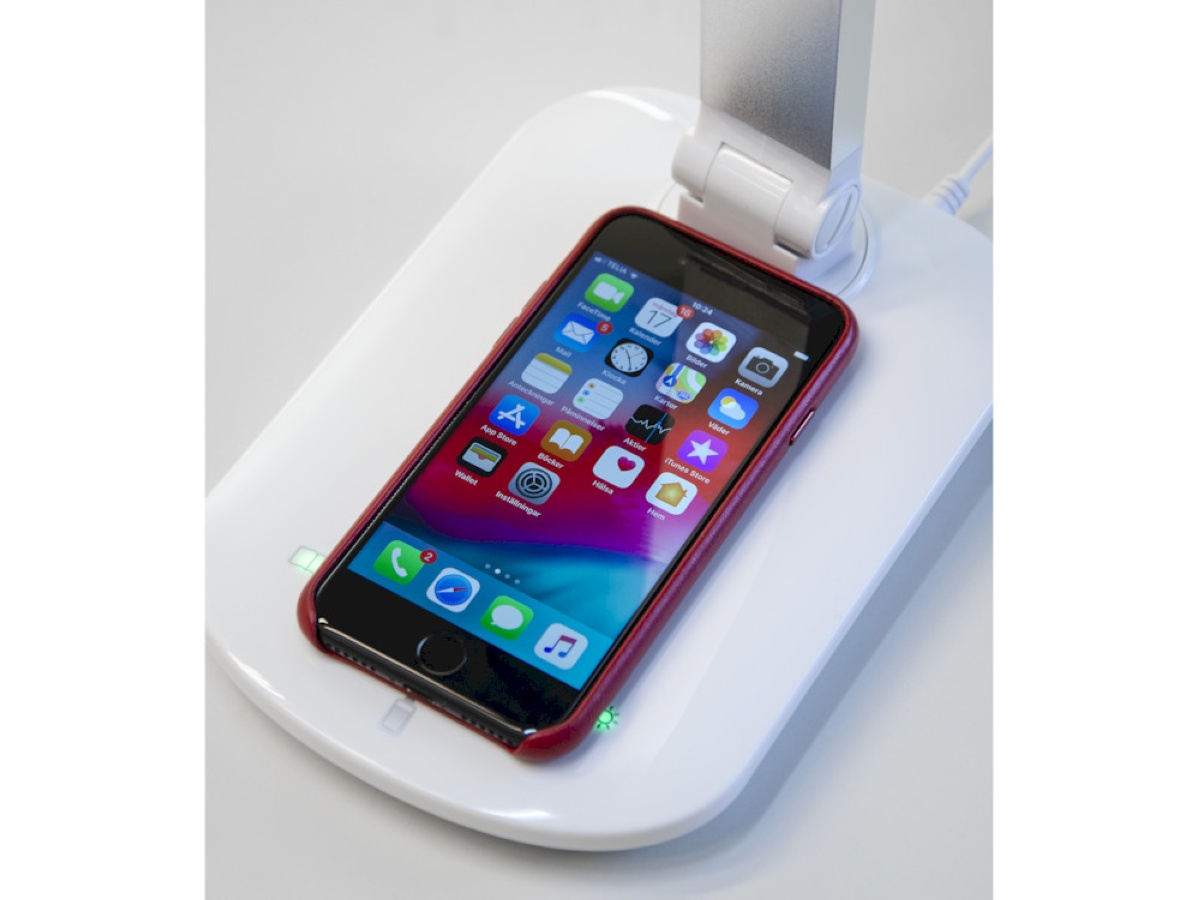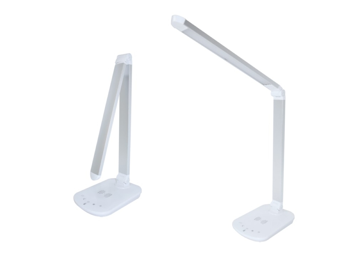 Combus skrivebordslampe. - QI kompatibel trådløs lader - dæmpbar 5 - 100% - justerbar farvetemperatur 2700-6400K - Ra (CRI)≥80 - 600 lumen (60 lm/w) - USB port - Ledning 1,5 meter.