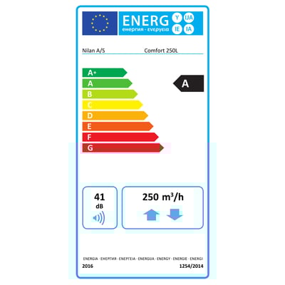 Comfort 250L er et energieffektivt ventilationsaggregat med varmegenvinding, designet til boliger og mindre erhvervsbygninger med et ventilationsbehov på op til 250 m3/h. Aggregatet er udstyret med en unik boostfunktion, der er optimeret til emhættedrift. Ved aktivering af denne funktion får man mulighed for en ekstra kapacitet på 50 m3/h, hvilket sikrer et effektivt sug i emhætten. Comfort 250L kan via boostfunktionen levere op til 300 m3/h ved 200 Pa eksternt tryktab.