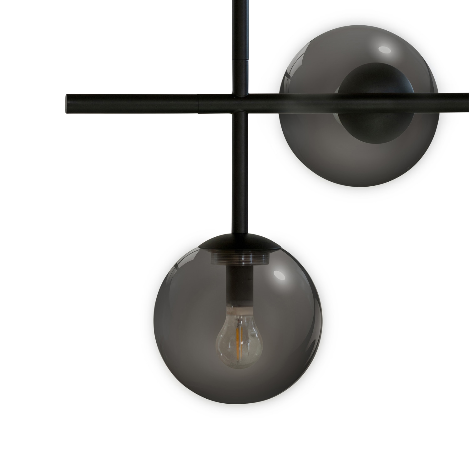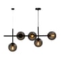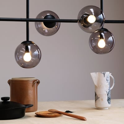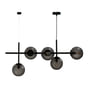 Eksklusiv langbordspendel fra Dyberg Larsen med arme, der spreder lyset ned over bordet og ud i rummet. Flotte detaljer og røgfarvet glas.
