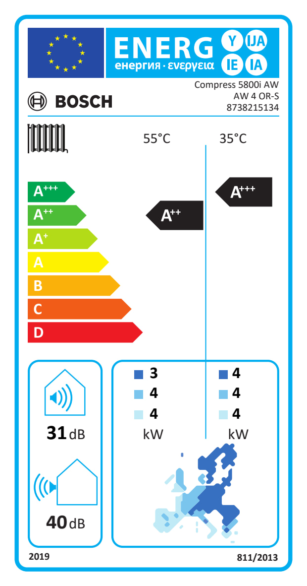 Bosch Compress 5800i AW 5 OR-S luft/vand varmepumpe. Støjsvag drift med naturligt kølemiddel R290. Kompakt nordisk design.
