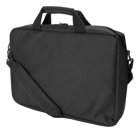 Udover det primære rum, finder du et praktisk udvendigt rum, perfekt til opbevaring af mindre dokumenter, kabler, mus eller andre essentielle tilbehørsdele. Tasken kombinerer funktionalitet med et stilrent design i sort.