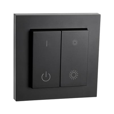 Dette er en front connect switch i sort. Den er designet til nem og hurtig installation.