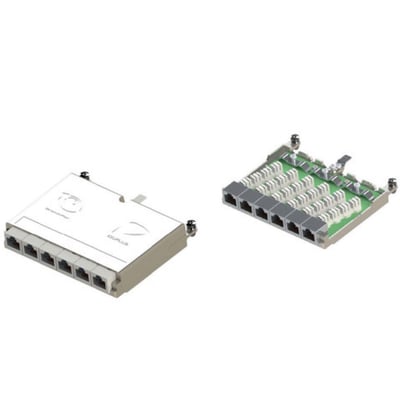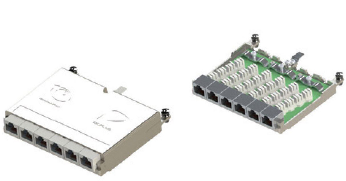 Hvert modul består af 6 RJ45-porte og kan leveres med lav profil stand alone modul eller med monteringsbeslag. Monteringsbeslaget giver mulighed for sikker fastgørelse på vægge, lofter og under gulve. Montagebeslaget er også udstyret med kabelaflastningspunkter.