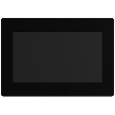 CP610-B control panel med 10.1" touchskærm, 1024 x 600 opløsning og 64.000 farver. Sort front uden ABB logo.