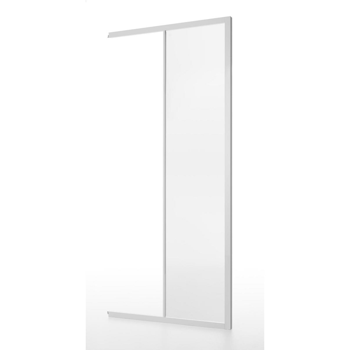 Fast væg fra Contura Shower med klart glas og hvid profil. Mål: 850 mm x 190 cm.