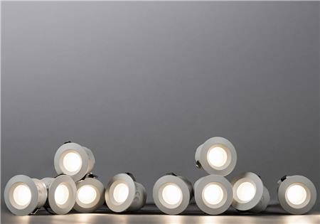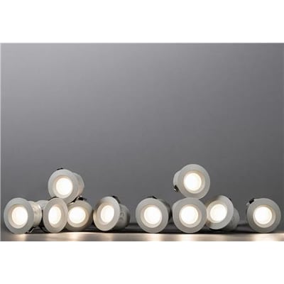 Eksklusivt accentarmatur i 10-pak med karabinhage. Integreret trykklemme for nem seriekobling uden eksterne samlestykker. Til indbygning i nicher og møbler.