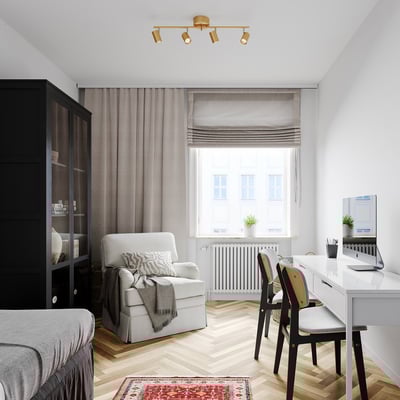 - Skinnen består af to separate rør med to spots på hver, der kan drejes uafhængigt af hinanden.
