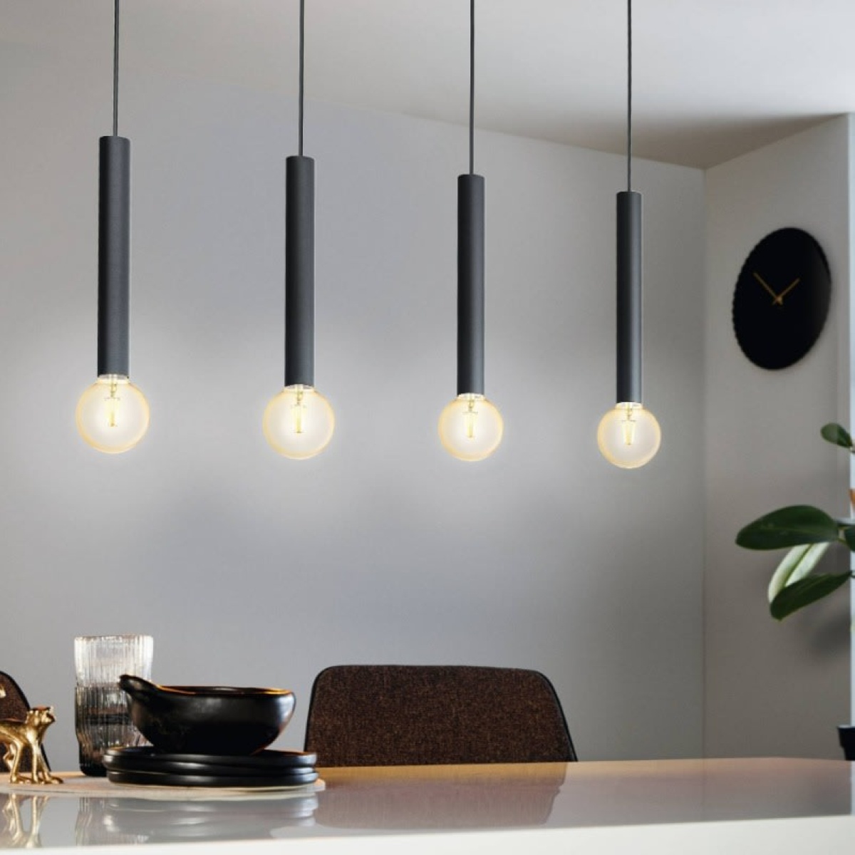Elegant EGLO Cortenova langbordspendel med fire fatninger. Stilrent design i sort stål. Ekskl. lyskilder. Maks. 4 x 60W. Energiklasse: A++ - E.
