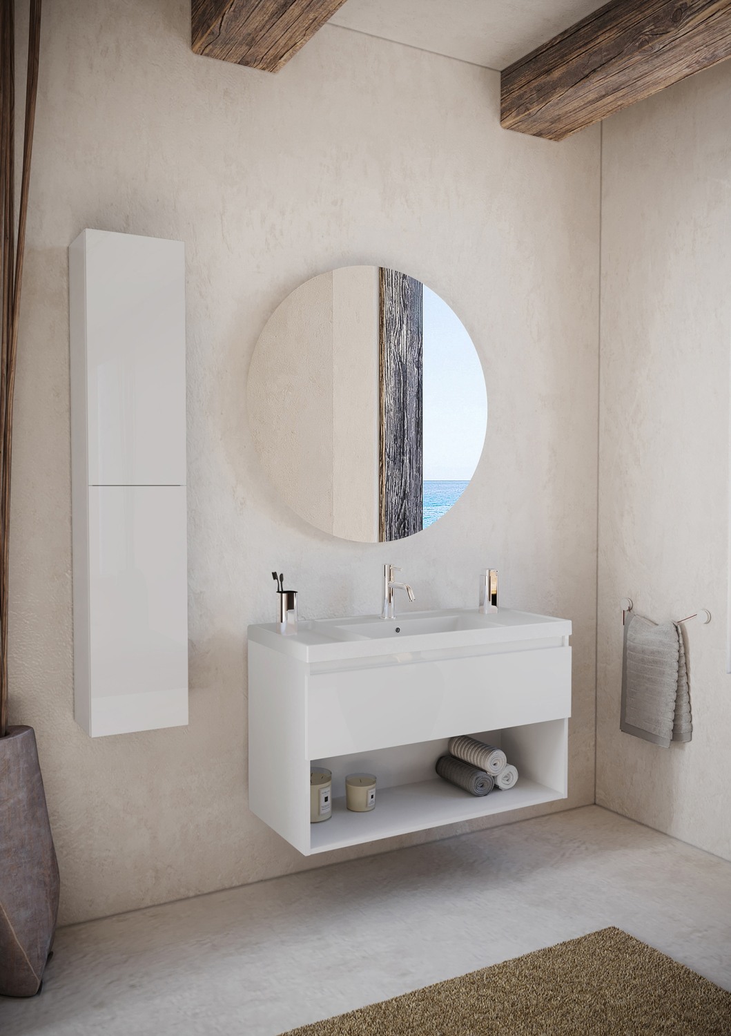 Denne Cosmic møbelpakke kombinerer funktionalitet med et stilrent design. Pakken indeholder et møbel med 1 skuffe og 1 skab, perfekt til opbevaring på badeværelset.