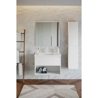 Dette underskab fra Cosmic-serien er designet til at tilføje både stil og funktionalitet til dit badeværelse. Med sin hvide højglansfinish og integrerede greb udstråler det moderne elegance.