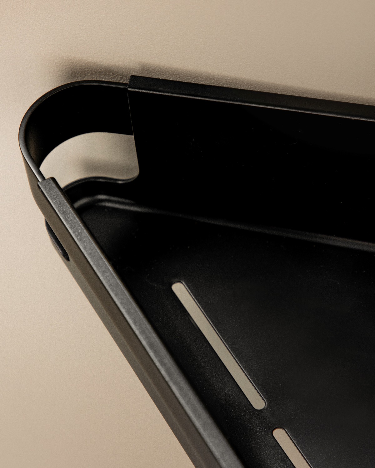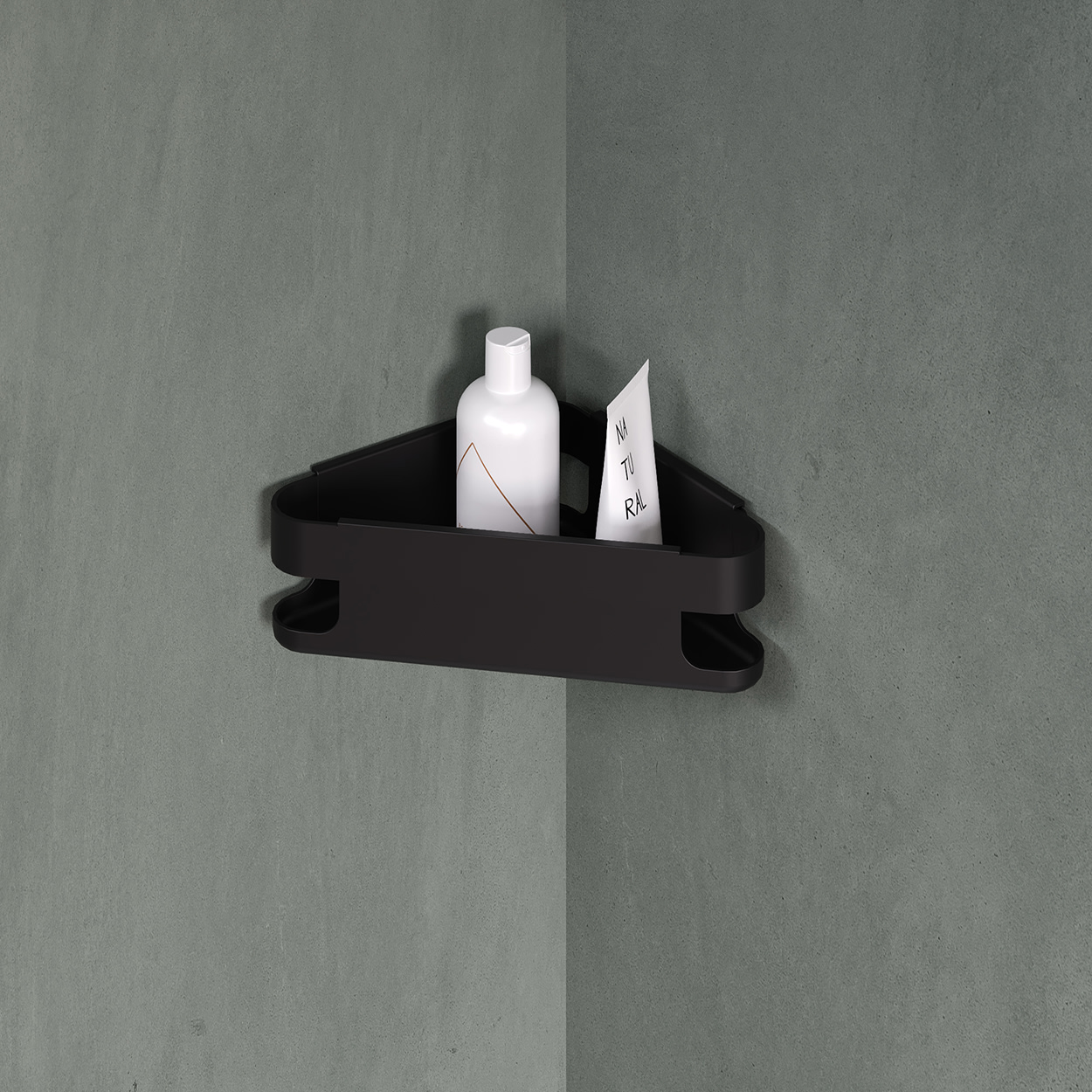 Stilfuld og praktisk badeværelseshylde i mat sort finish. Mål: 219x217x80 mm. Perfekt til opbevaring i brusekabinen.