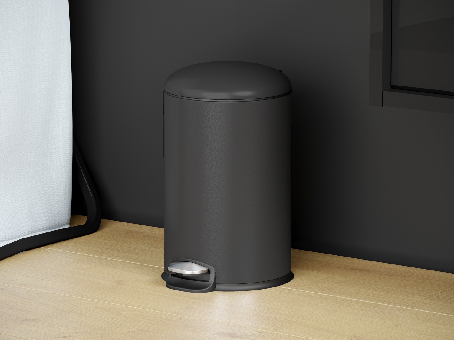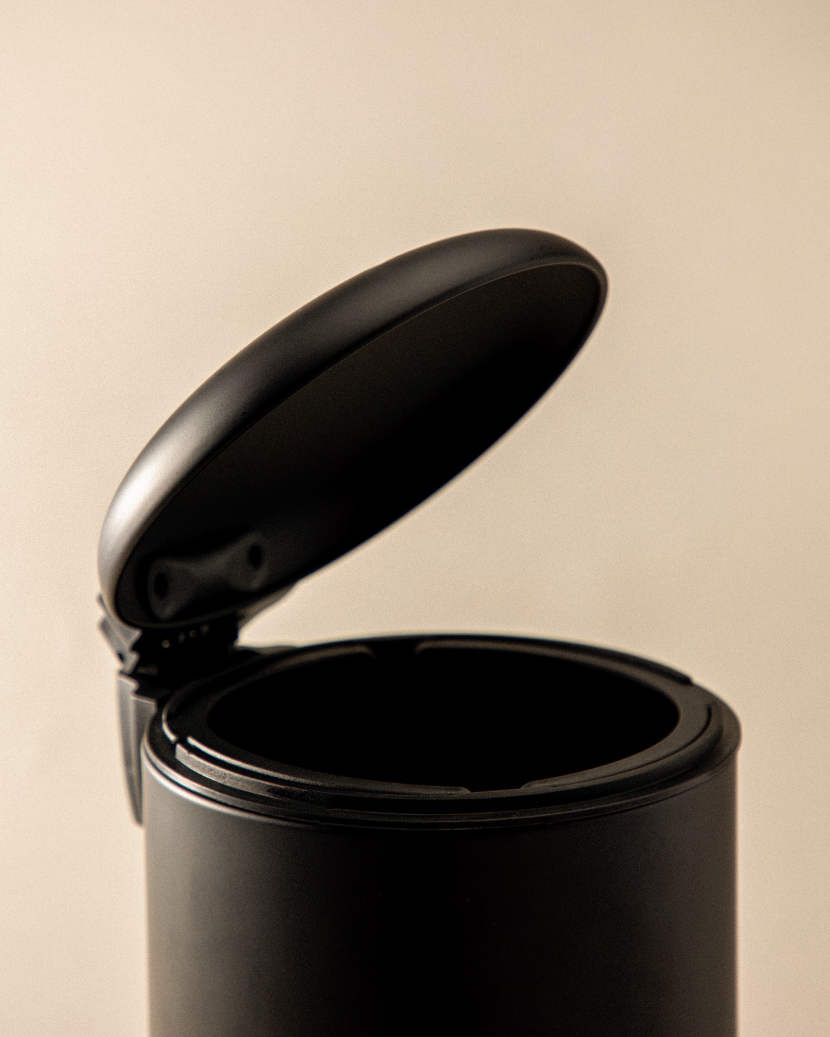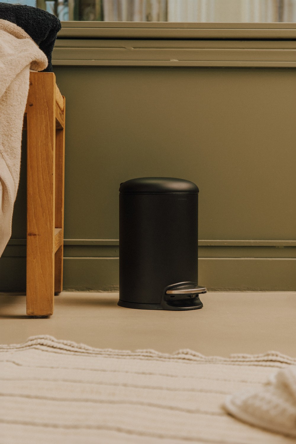 Praktisk affaldsspand på 3,5 liter med pedal og mat sort finish. Ideel til badeværelset.