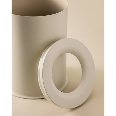 Stilren affaldsspand på 5 liter i mat hvid. Perfekt til badeværelset med en diameter på 200 mm og en højde på 256 mm.