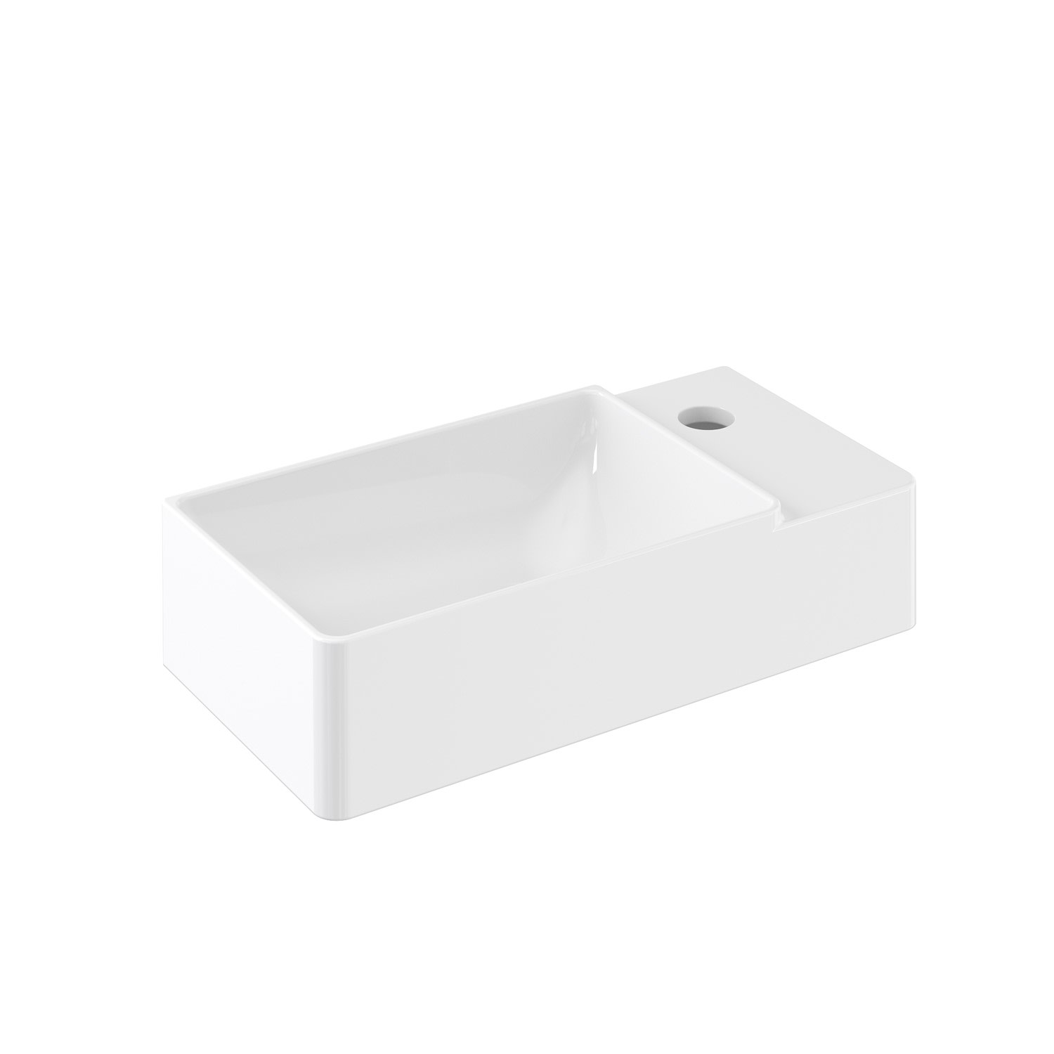 Cosmic Left håndvask i hvidt porcelæn/keramik til vægmontering. Mål: 400 x 150 x 200 mm.