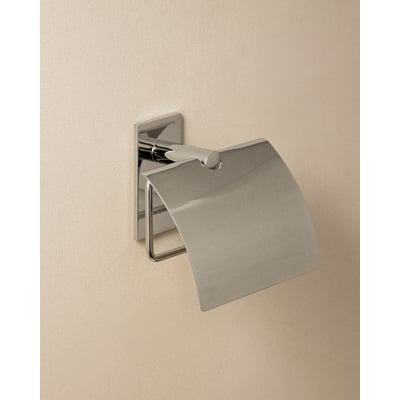 Stilfuld og funktionel toiletpapirholder i krom med låg. Mål: 125 x 60 x 115 mm.
