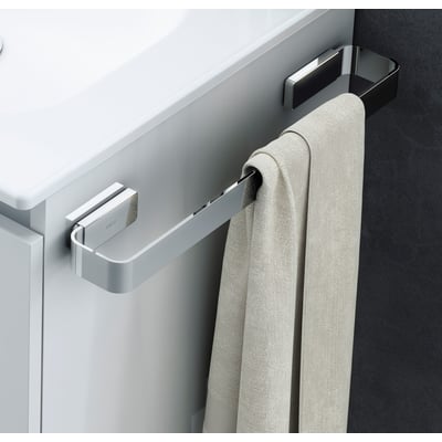 Stilfuld og funktionel håndklædeholder i krom med blank overflade. Mål: 400 x 65 x 30 mm.