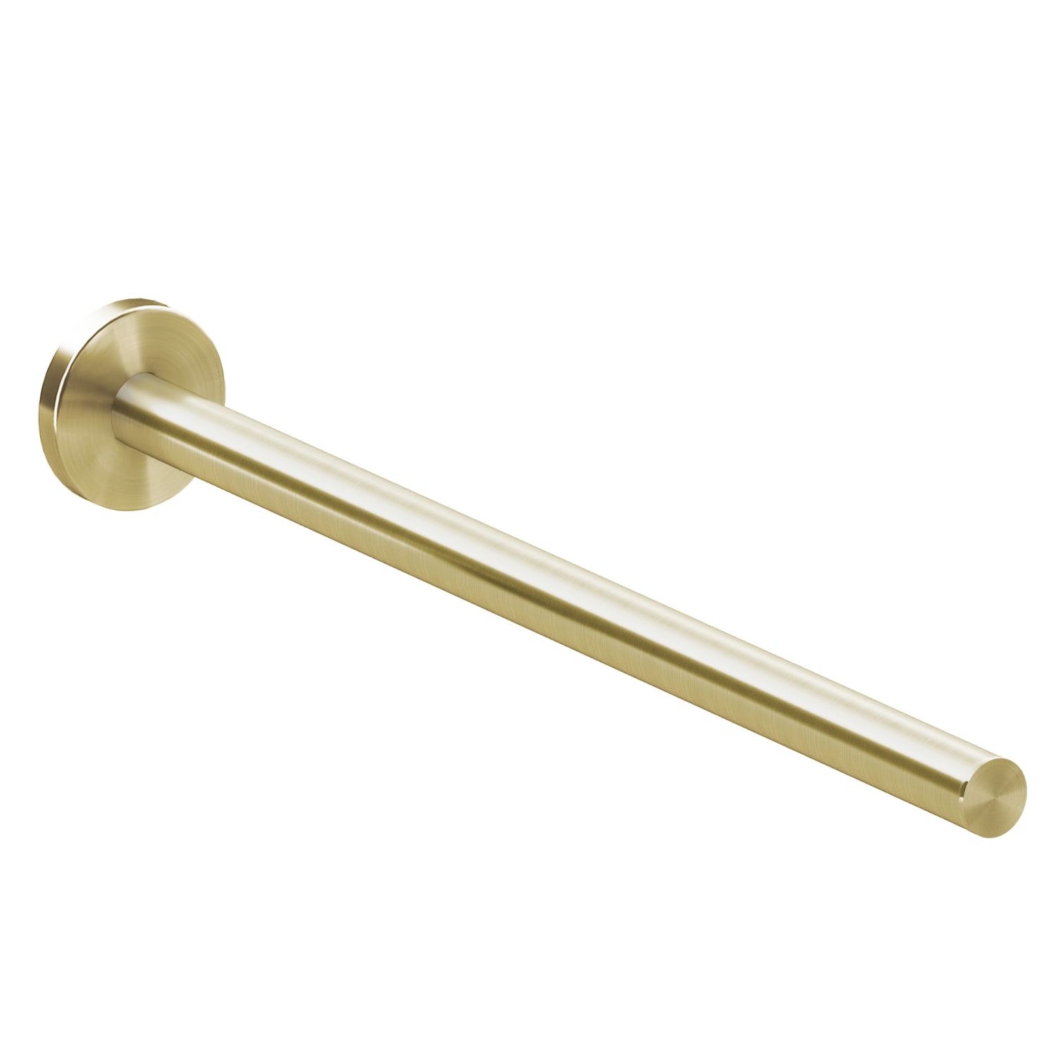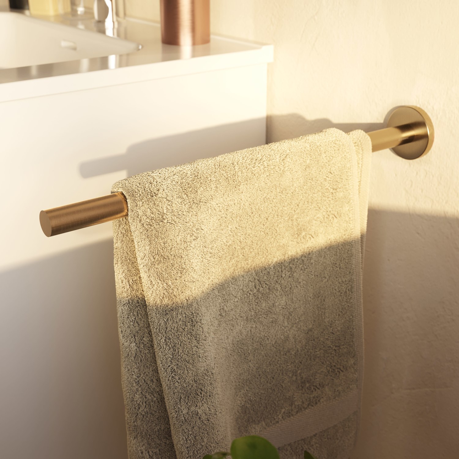 Stilfuld og funktionel håndklædeholder i børstet guld. Perfekt til ethvert badeværelse.