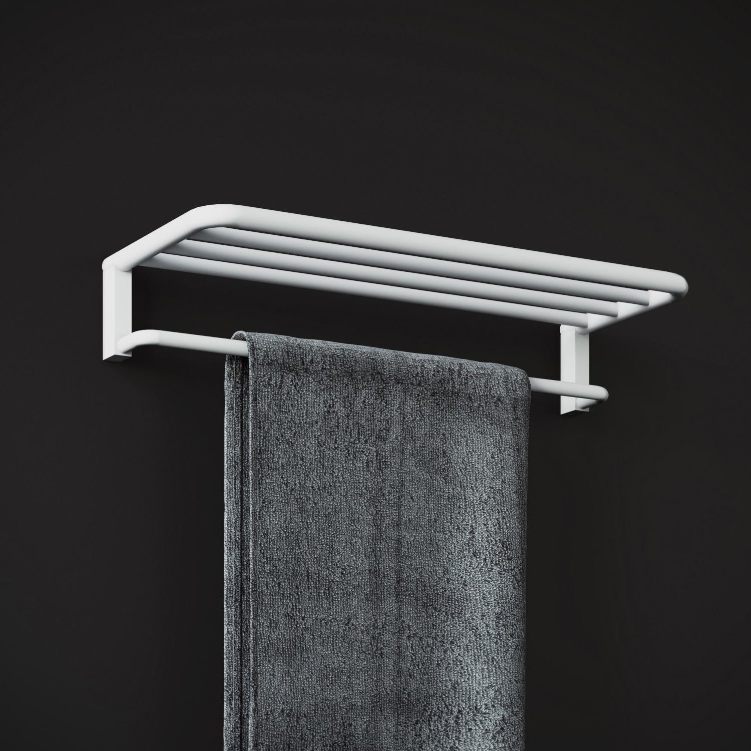 Elegant og funktionel hylde til håndklæder i mat hvid finish. Mål: 600x75x20 mm.