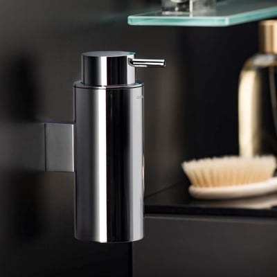Stilfuld sæbedispenser i blank krom. Nem montering på væggen.