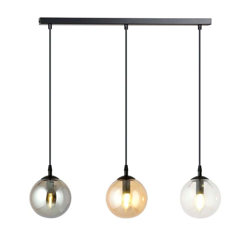 Cosmo 3 Sort Mix pendellampe i pulverlakeret stål og glas. Med en diameter på 14 cm, E14 fatning og 230V spænding. Perfekt til at skabe stemning i ethvert rum. Max 10W.