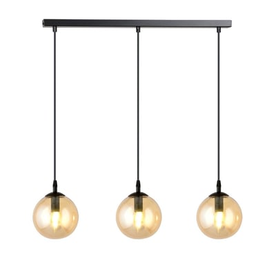 Cosmo 3 pendellampen i sort/rav tilbyder en stilfuld og moderne belysningsløsning. Med sit sofistikerede design og en kombination af pulverlakeret stål og glas, passer denne lampe perfekt ind i en række forskellige indretningsstile, fra det minimalistiske til det mere industrielle. Den er ideel til at skabe en hyggelig atmosfære over et spisebord, i en entré eller som et dekorativt element i stuen.