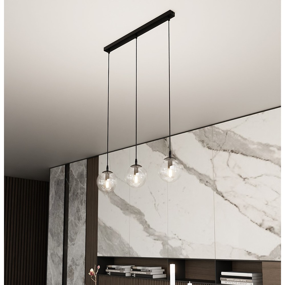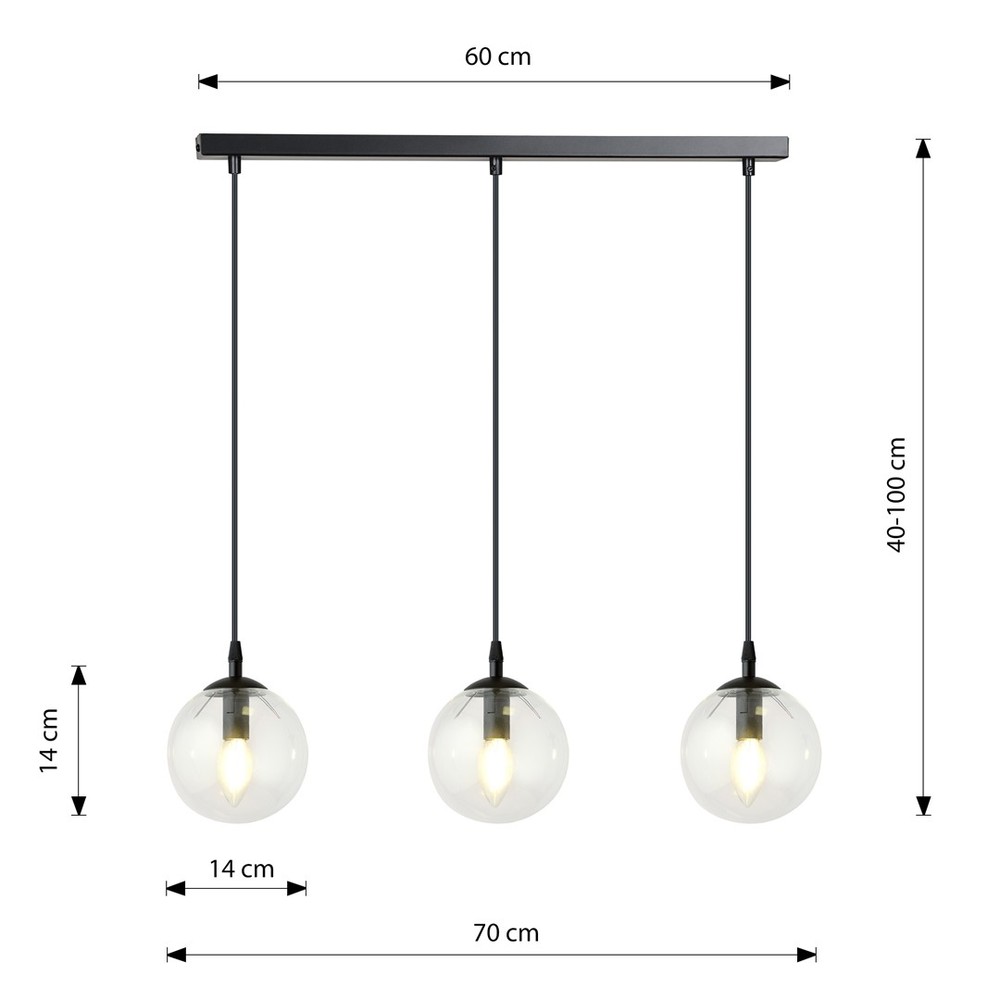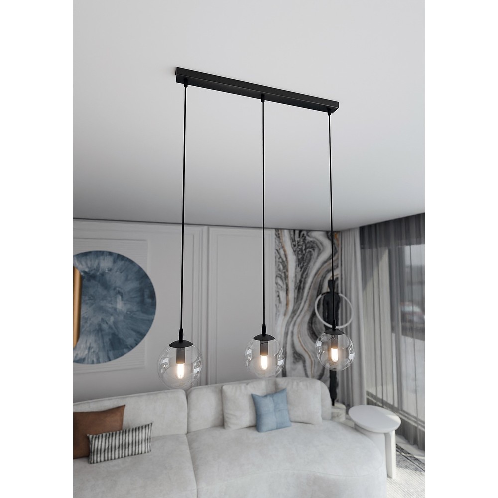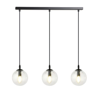 Cosmo 3 pendellampen er en elegant og moderne belysningsløsning, der passer ind i mange forskellige indretningsstile. Med sit sorte/transparente design og pulverlakerede stålkonstruktion kombineret med glas, tilbyder den et sofistikeret udtryk. Lampen er designet til at give et behageligt lys, der kan tilpasses med den ønskede E14 lyskilde (medfølger ikke).