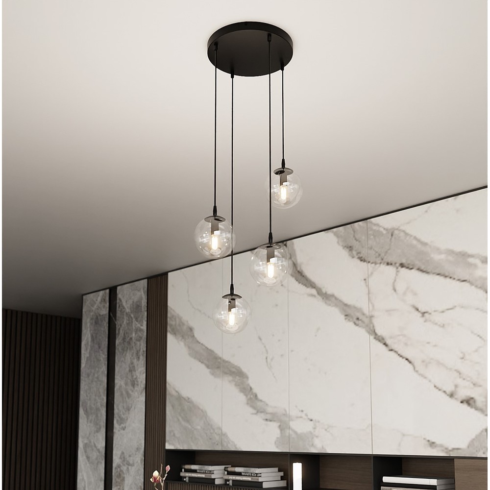Cosmo 4 Premium pendellampen er et stilfuldt valg til enhver moderne indretning. Med sit minimalistiske design og kombinationen af pulverlakeret stål og transparent glas, tilføjer den et sofistikeret touch til rummet. Lampen er designet til at fungere med en E14 lyskilde (medfølger ikke), hvilket giver dig frihed til at vælge den lysstyrke og farvetemperatur, der passer bedst til dit behov og din atmosfære.