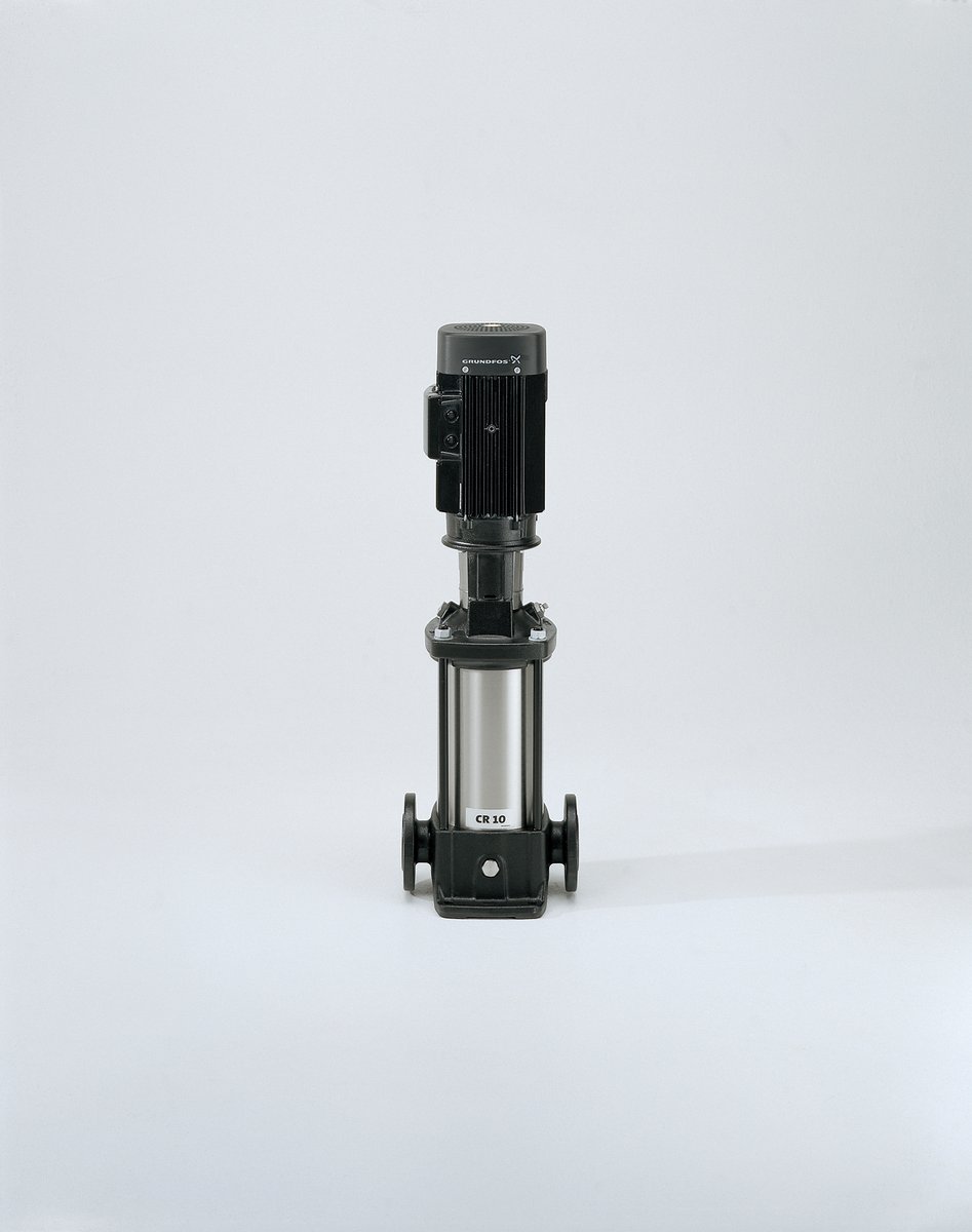 Vertikal, normalsugende in-line flertrins-centrifugalpumpe til rørinstallation og montering på fundament. Med løbere og mellemkamre i rustfrit stål.