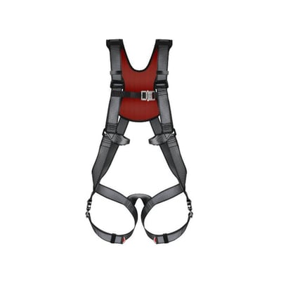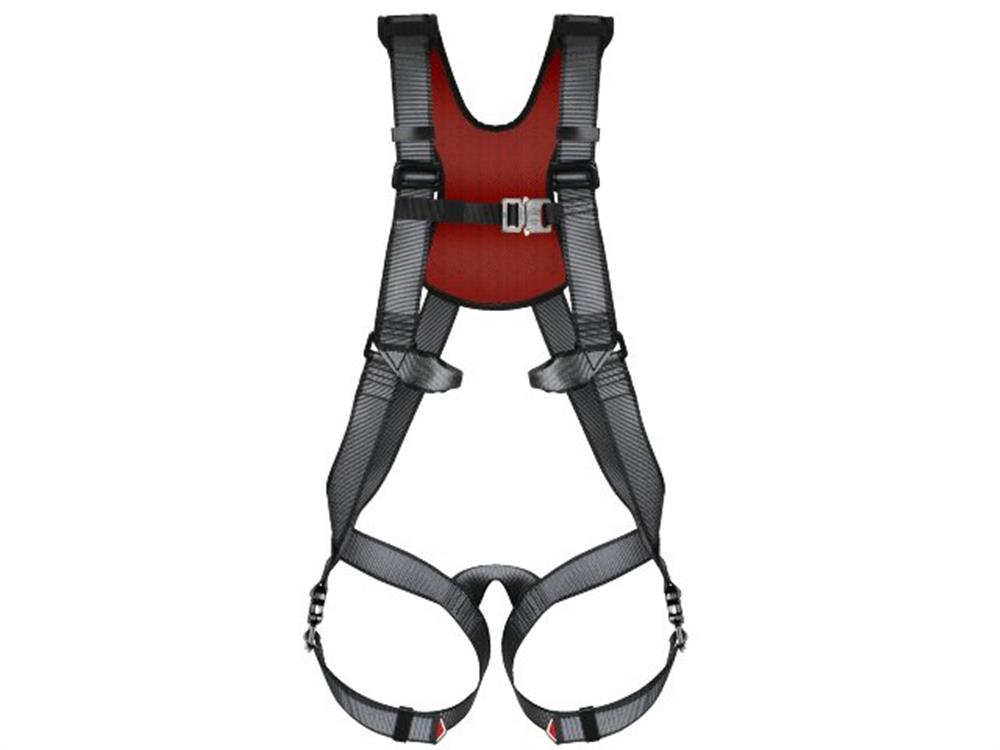 2-punkts faldsikringssele med justerbare skulderremme for optimal komfort og tilpasning. Forankringsøjer i hoftehøjde sikrer frit arbejdsfelt. Brystvidde: 80-150 cm, længde: 160-190 cm.