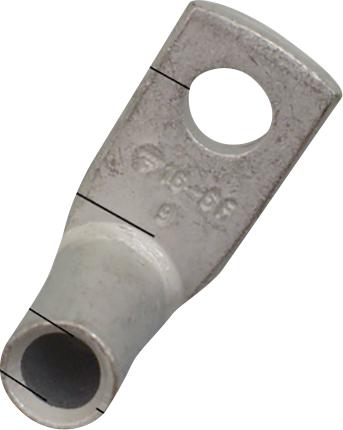 Kobber rørkabelsko KRF95-16-90GR. Materiale: Cu 99,95%, fortinnet. Vinklet 90°. Til 95mm2 fåtrådige og mangetrådige Cu-leder iht. IEC60228. Laske M16. Med inspektionshul.