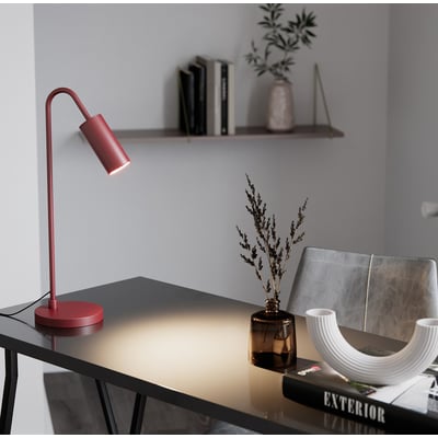 Curve bordlampe er en enkel og stilren lampe, der med sit elegante design passer ind i mange indretninger. Lampen er udført i metal og har en mat, rustrød finish.