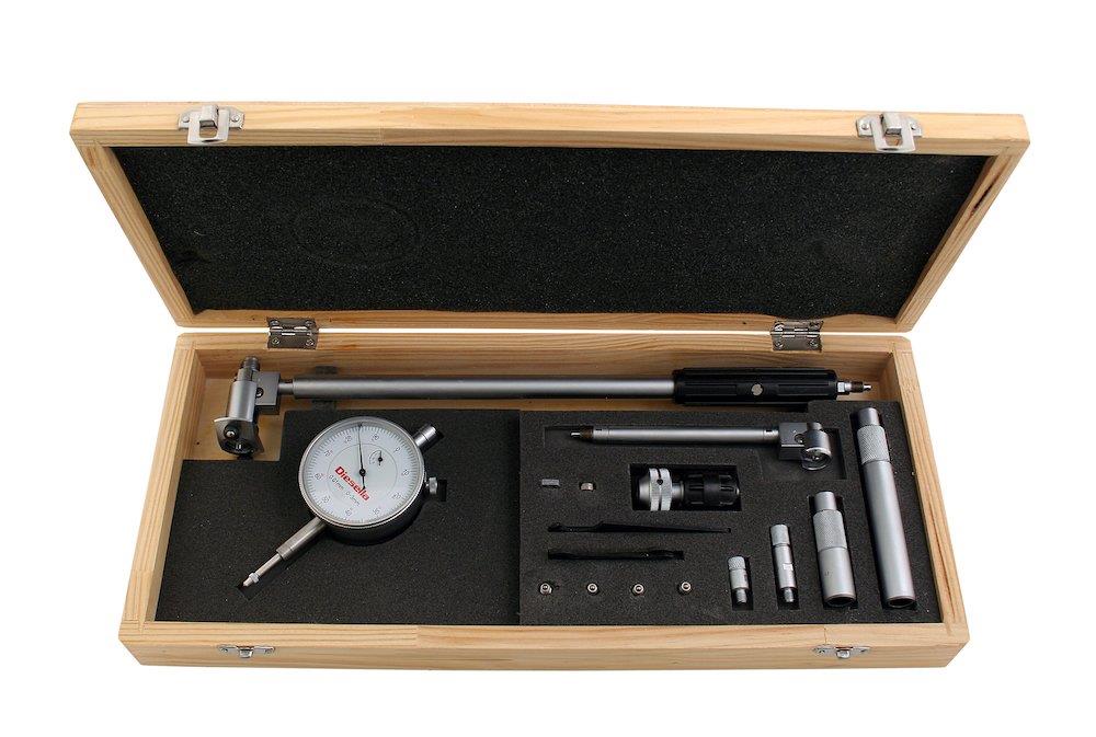 Dette cylindermålersæt fra Diesella er et specialværktøj designet til præcis måling af indvendige diametre i huller, cylindre og rør. Ved at kombinere cylindermåleren med en mikrometerskrue opnås en nøjagtig aflæsning af cylinderens størrelse.