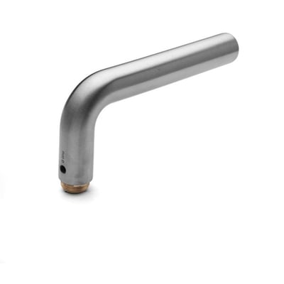 Elegant Knud Holscher halvt dørgreb i børstet stål med L-Form design og 16 mm tykkelse.