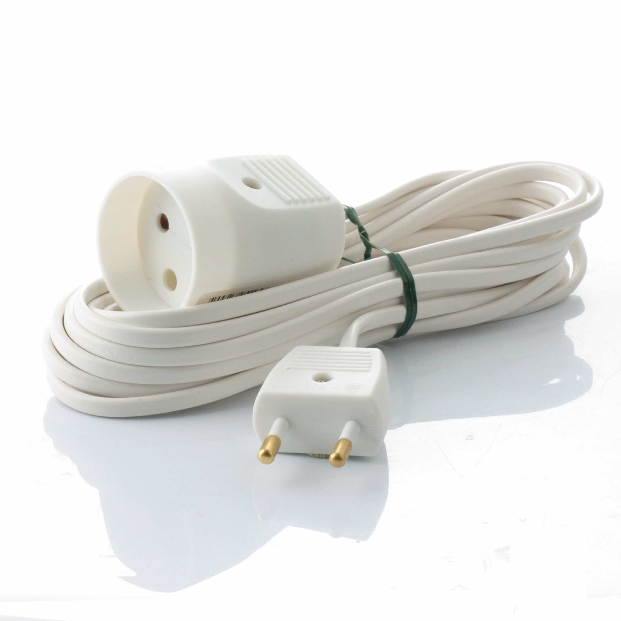 D-mærket forlængerledning uden jord til brug som forlængelse mellem stikkontakt og enhed.