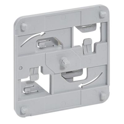Dåsebeslag til IBP bokse med dimensionerne 80 x 80 mm. Fremstillet i grå plast. Passer til dåse type BP og gitterbakker.