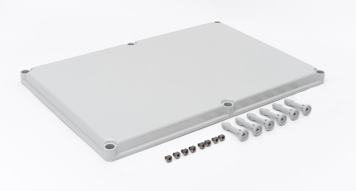 Dækslet leveres med skruer for nem og sikker montering, hvilket sikrer en tæt forsegling. Den grå farve giver et diskret og professionelt udseende, der passer ind i mange forskellige installationer.